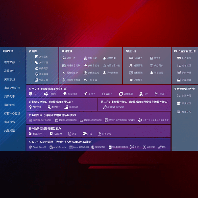 医疗器械产品上市前,,,,要熟悉严格与繁复评审标准,,,,整理分析监管机构指导文件中的海量信息。。企业急需一个智能化解决方案,,,提升知识管理效率,,,,提高评审通过率,,,,以提升其市场竞争力。。。